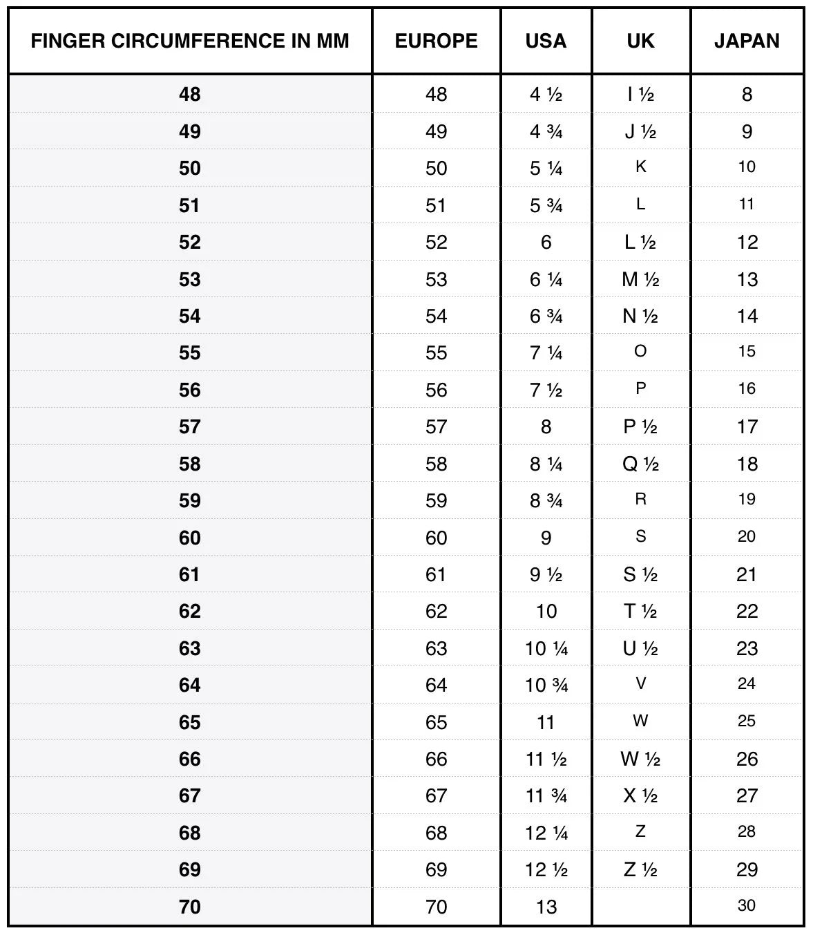 To determine your size, we strongly advise that you measure the size of your finger rather than the size of your ring.